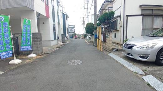 全面道路を含む現地。交通量も少なく、閑静な住宅街に位置した住みやすい環境です。 -