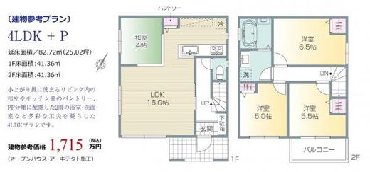 建物プラン例 建物価格1715万円、建物面積82.72㎡ -